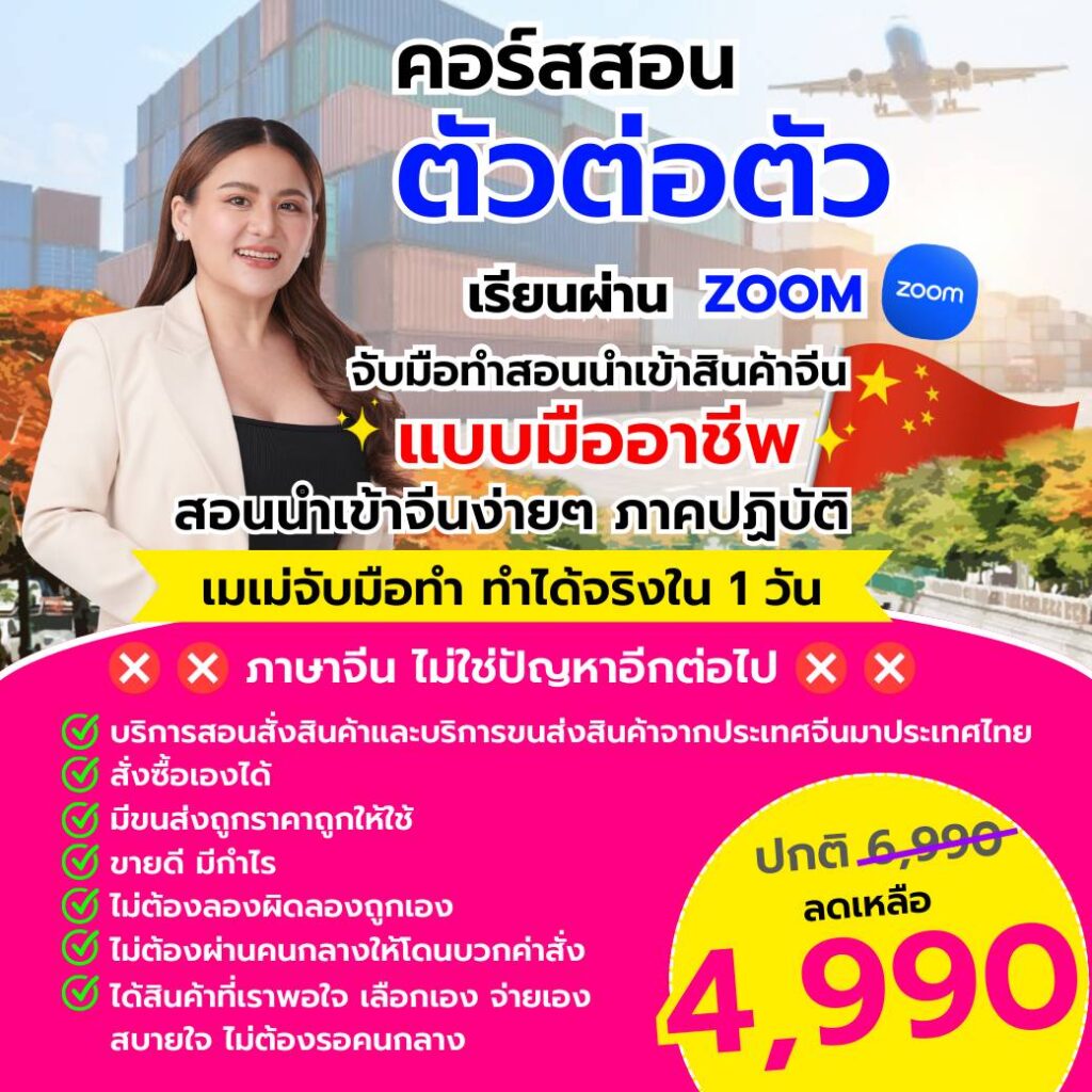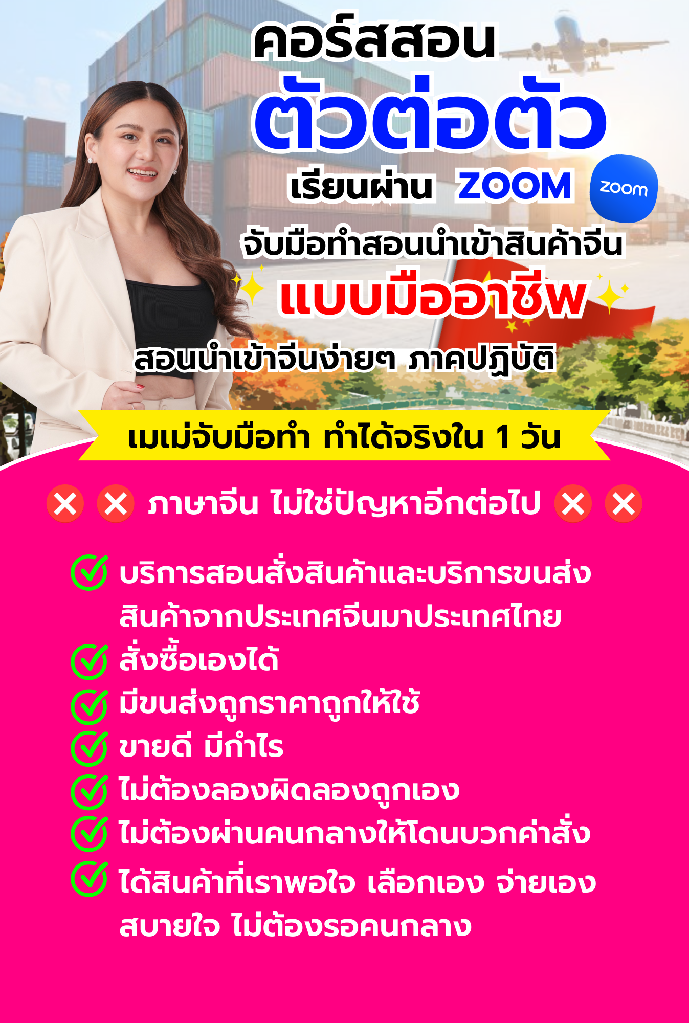 สำหรับพ่อค้าและแม่ค้าที่ไม่สะดวกเดินทางมาเรียนกับเรา และไม่อยากเรียนผ่านคลิปวีดีโอแบบสอนออนไลน์ สามารถใช้บริการคอร์สเรียนนำเข้า แบบผ่าน Zoom ได้ จัดเต็มให้ 4 ชั่วโมงแบบจุกๆ หากยังทำไม่ได้ สอนจนกว่าจะเป็น สอนแบบจับมือทำ ค่อยๆ ทำไปพร้อมๆ กับที่เราสอน ไม่เข้าใจสอบถามได้ตลอดในระหว่างเรียน เรียนจบปุ๊บ สั่งของเข้ามาขายได้ทันที ไม่ต้องรู้ภาษาจีนก็สั่งได้แบบมืออาชีพเลย